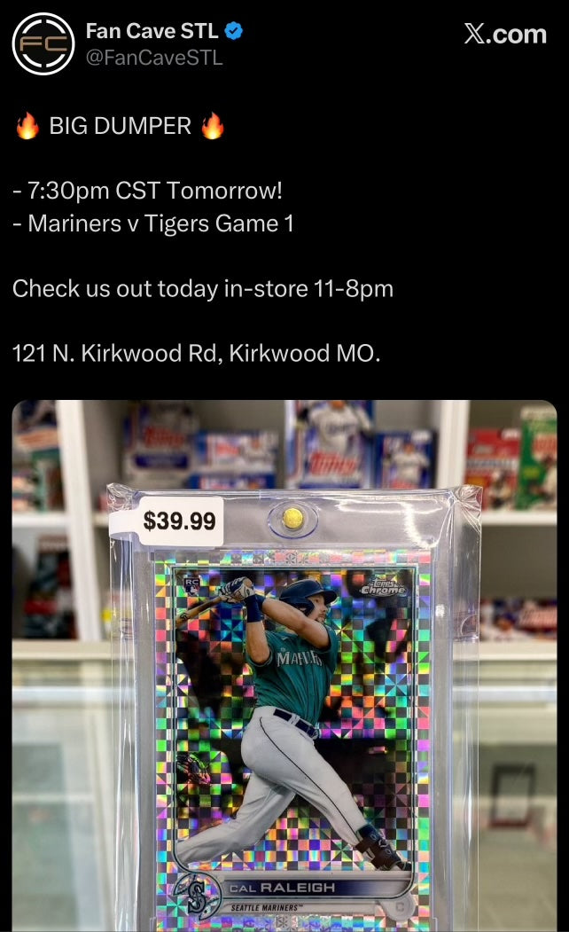 Just an AWESOME show! I stopped by the shop and I must say nothing but deals and GREAT cards!! I even sold a few cards and he gave me a great offer where I walked out the store smiling like a little kid π Wonderful atmosphere and the kids LOVED it as well. Thanks!