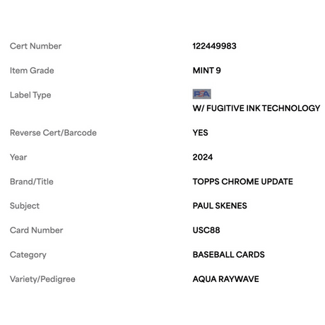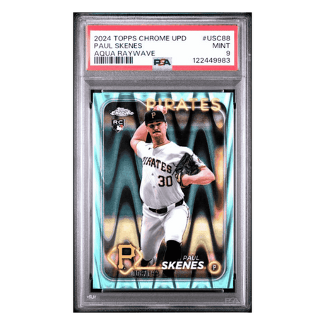 Paul Skenes PSA 9 2024 Topps Chrome Update Aqua Raywave Rookie RC #d/ 199 Card #USC88