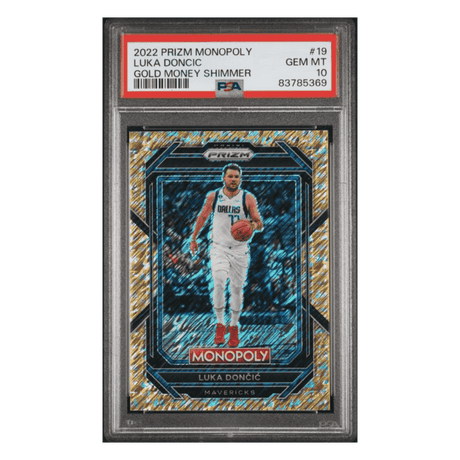 Luka Doncic PSA 10 2022 Panini Prizm Monopoly Gold Money Shimmer #d/ 500 Card #19