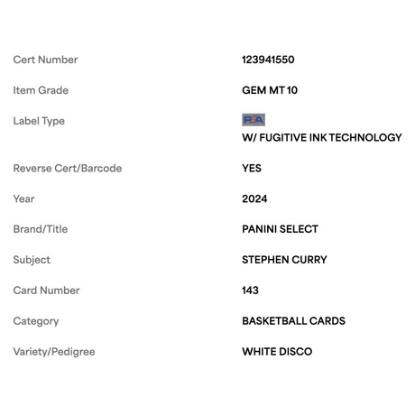 Steph Curry PSA 10 2024 Panini Select White Disco #d/ 75 Card #143