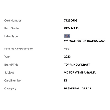 Victor Wembanyama PSA 10 2023 Topps Now Draft Rookie RC Card #D1
