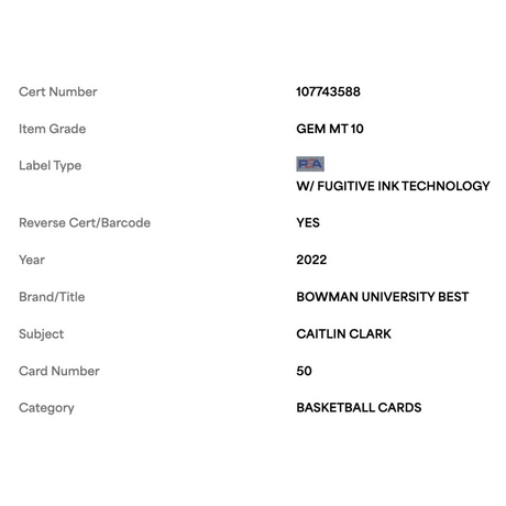 Caitlin Clark PSA 10 2022 Topps Bowman University Best Card #50