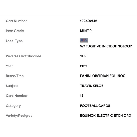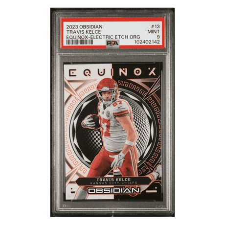 Travis Kelce PSA 9 2023 Panini Obsidian Equinox Electric Etch Org #d/ 65 Card #13