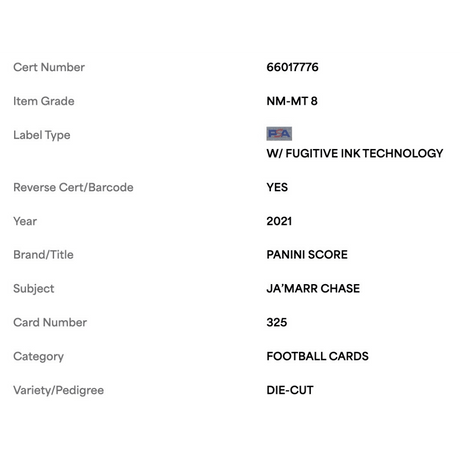 Ja'Marr Chase PSA 8 2021 Panini Score Die Cut Rookie RC #d/ 10 Card #325