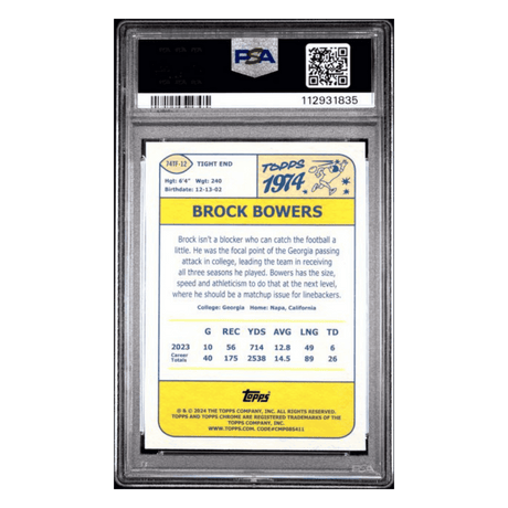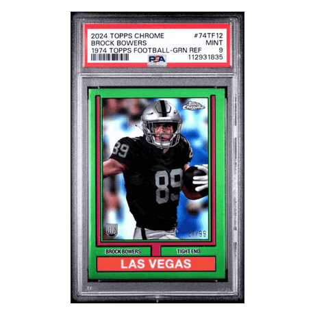 Brock Bowers PSA 9 2024 Topps Chrome 1974 Topps Football Green Refractor Card #74TF12