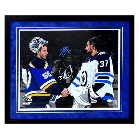 Jordan Binnington Connor Hellebuyck Dual Autographed Framed 16x20 Photo - JSA COA