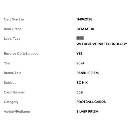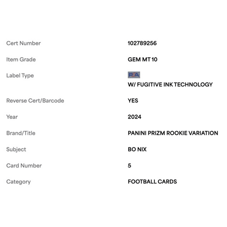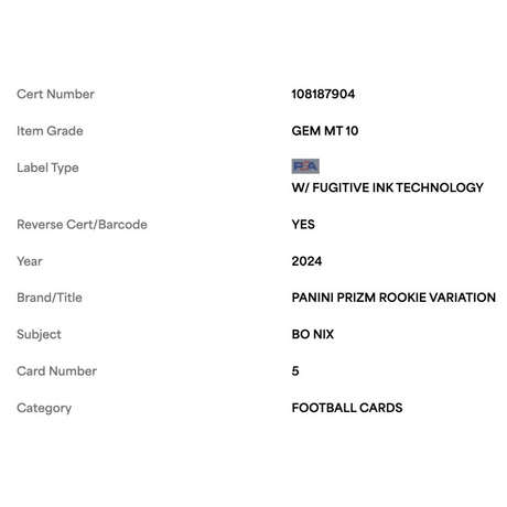 Bo Nix PSA 10 2024 Panini Prizm Draft Picks Prizm Breaks Card #PBBNX