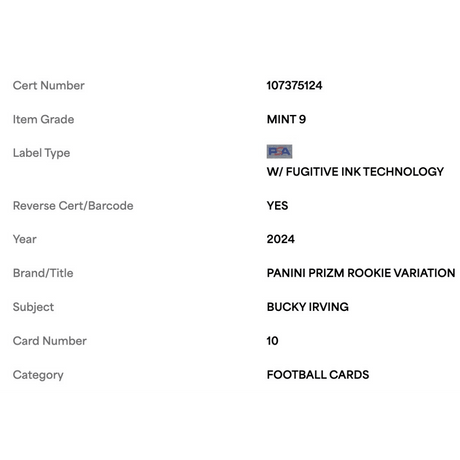 Bucky Irving PSA 9 2024 Panini Prizm Rookie Variation Card #10