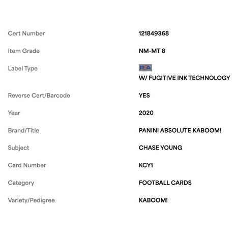 Chase Young PSA 8 2020 Panini Absolute Kaboom! Rookie RC Card #KCY1