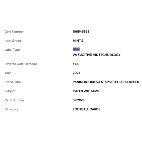 Caleb Williams PSA 9 2024 Panini Rookies & Stars Stellar Rookies Card #SRCWS