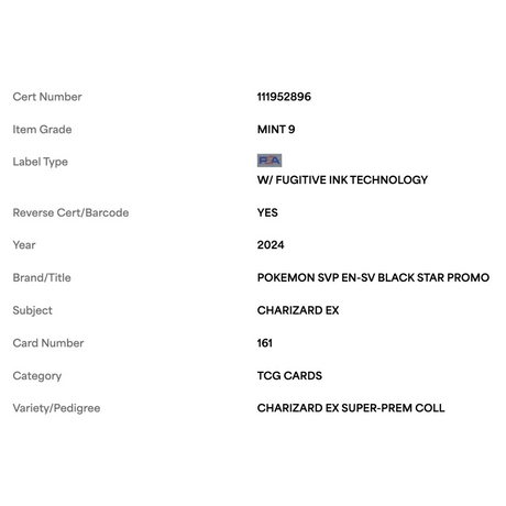 Charizard ex PSA 9 2024 Pokemon SVP EN-SV Black Star Promo Card #161