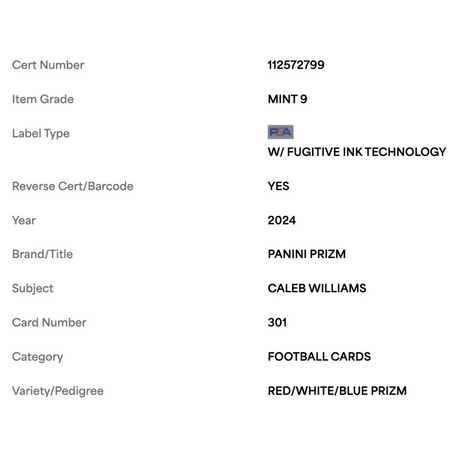 Caleb Williams PSA 9 2024 Panini Prizm Red White Blue Rookie RC Card #301
