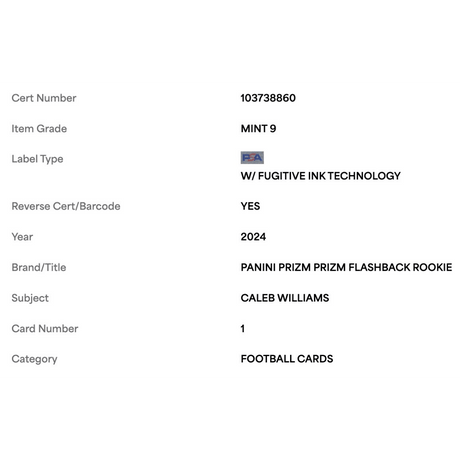 Caleb Williams PSA 9 2024 Panini Prizm Flashback Rookie RC Card #1