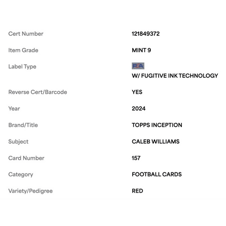 Caleb Williams PSA 9 2024 Topps Inception Red #d/75 Card #157