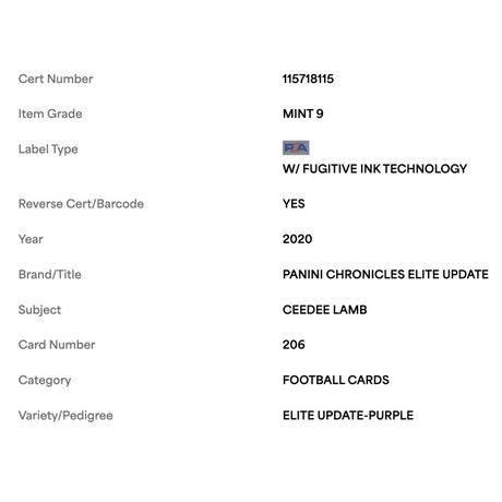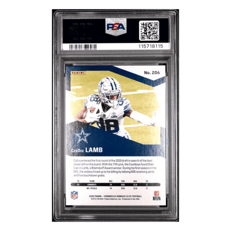 CeeDee Lamb PSA 9 2020 Panini Chronicles Elite Update Purple Rookie RC #d/ 99 Card #206