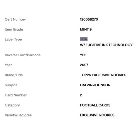 Calvin Johnson PSA 9 2007 Topps Exclusive Rookies Card #2