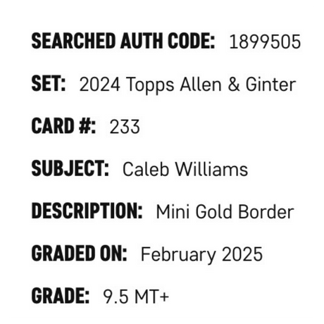 Caleb Williams SGC 9.5 2024 Topps Allen & Ginter Mini Gold Border Card #233