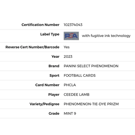 CeeDee Lamb PSA 9 2023 Panini Select Phenomenon Tie Dye Prizm Card #PHCLA