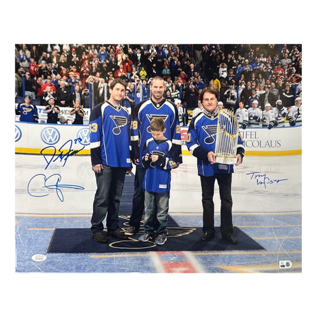 Carpenter / Freese / La Russa Triple Autographed Blues Puck Drop 16x20 Photo - JSA & MLB COA