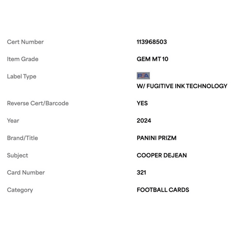 Cooper DeJean PSA 10 2024 Panini Prizm Rookie RC Card #321