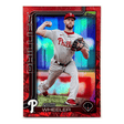 For avid baseball collectors and fans of Zack Wheeler this 2025 Topps Series One Red Foil Palm Tree Border #d/5 Card #218 is an absolute gem! This pristine piece is a must-have addition to any sports card collection.