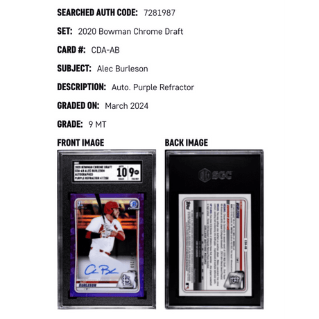 Alec Burleson SGC 9.5 2020 Bowman Draft 1st Edition Yellow Foil #D 71/75 Rookie RC Card #BD-45