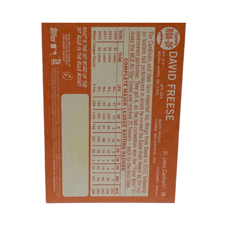David Freese St Louis Cardinals Topps Ticket to Stardom Rookie #223 Card
