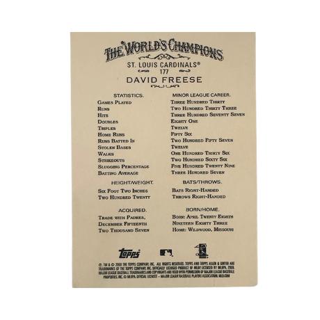 David Freese St Louis Cardinals Topps 2009 Allen & Ginter's #177 Rookie Card