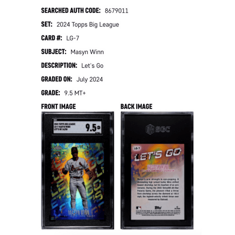 Masyn Winn SGC 9.5 2024 Topps Big League Lets Go 14/50 Card #LG-7