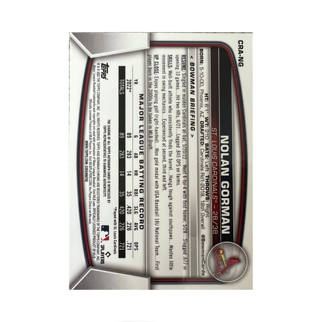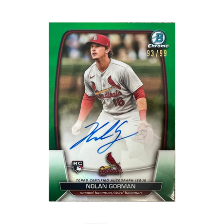 Nolan Gorman St Louis Cardinals 2023 Bowman Chrome Auto Green RC #93/99 CRA-NG