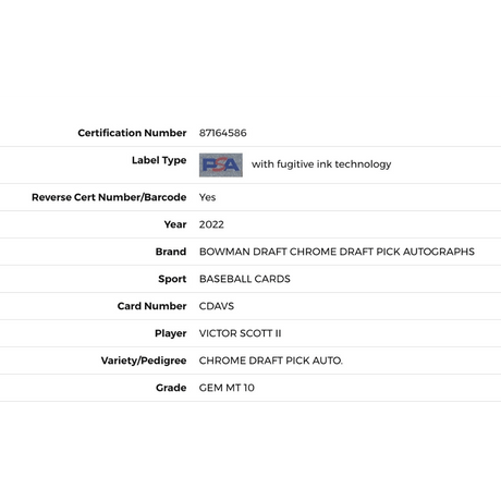 Victor Scott II PSA 10 2022 Bowman Chrome Draft Prospect Autograph Rookie RC Card #CDAVS
