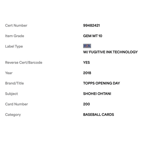 Shohei Ohtani PSA 10 2018 Topps Opening Day Rookie RC Card #200