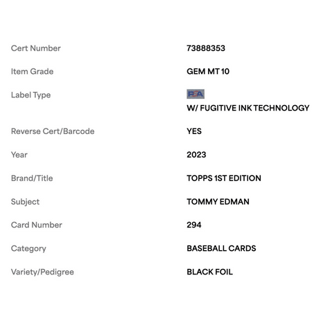 Tommy Edman PSA 10 2023 Topps 1st Edition Black Foil #d/ 25 Card #294
