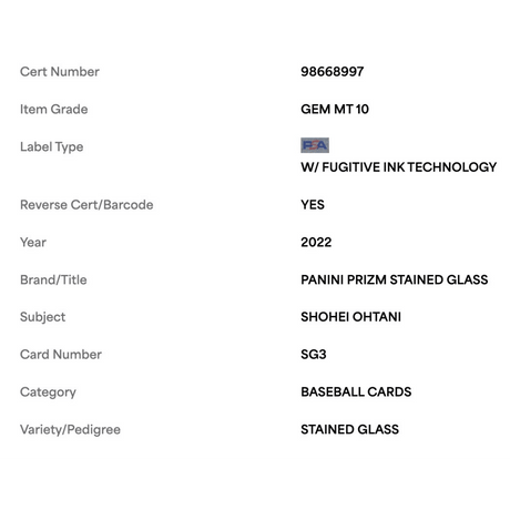 Shohei Ohtani PSA 10 2022 Panini Prizm Stained Glass Card #SG3