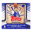 Topps presents the 2025-26 Topps Basketball Hobby Box! Each box contains 20 packs with 12 cards per pack. Get ready to rip into a slam-dunk set featuring the hottest rookies, superstar veterans, and legendary retired NBA icons. 2025-26 Topps Basketball delivers fresh, clean designs that capture the pulse-pounding energy of today's game while honoring the iconic look and feel of past releases. Look for 1 autograph and 1 relic crd in every hobby jumbo box!
