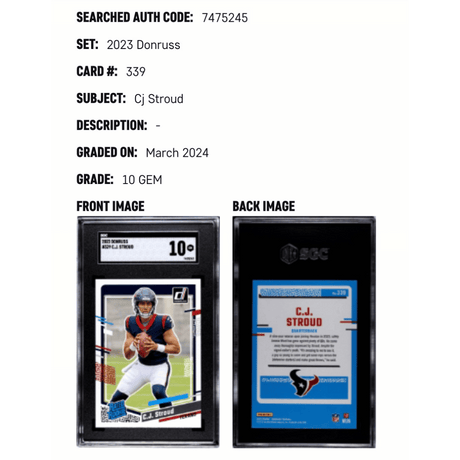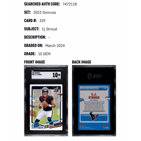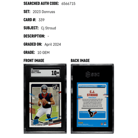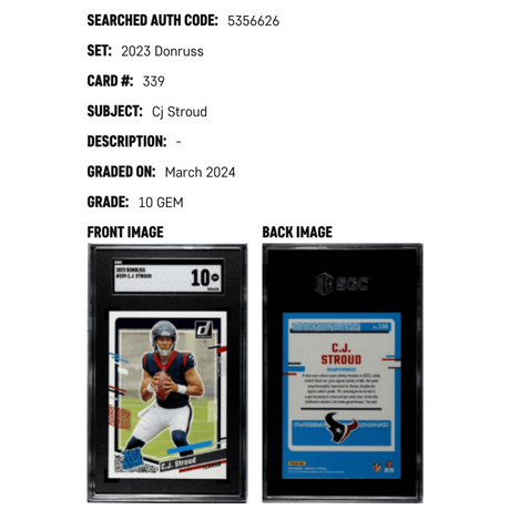C.J. Stroud SGC 10 2023 Donruss Rated Rookie #339