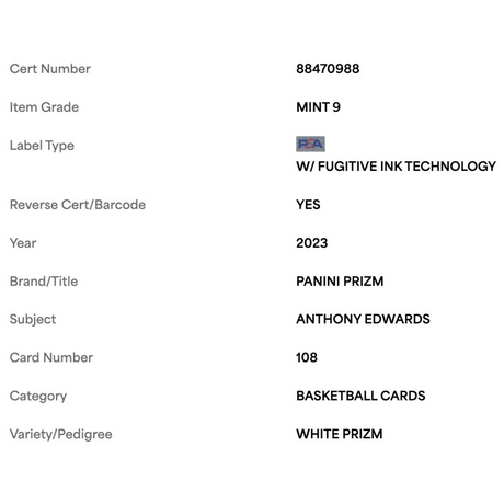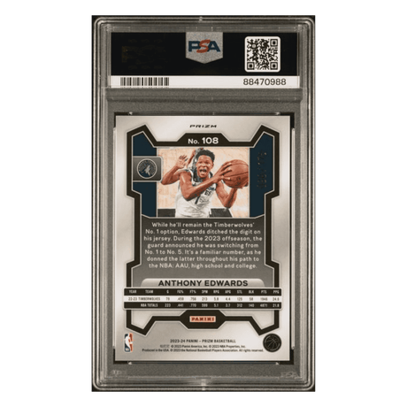Anthony Edwards PSA 9 2023 Panini Prizm White #d/175 Card #108