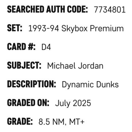 Michael Jordan SGC 8.5 1993-94 Skybox Premium Dynamic Dunks Card #D4