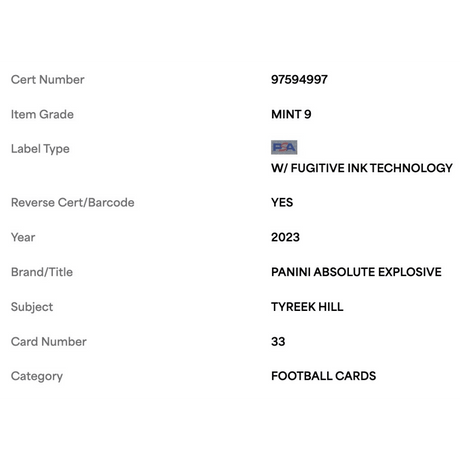 Tyreek Hill PSA 9 2023 Panini Absolute Explosive Card #33