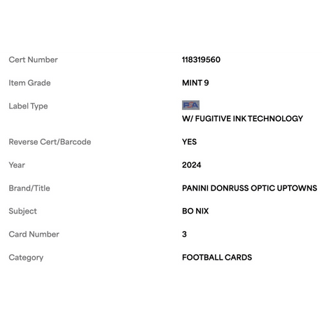 Bo Nix PSA 9 2024 Panini Donruss Optic Uptowns Rookie RC Card #3