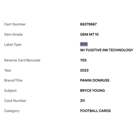 Bryce Young PSA 10 2023 Panini Donruss Rated Rookie Card #311