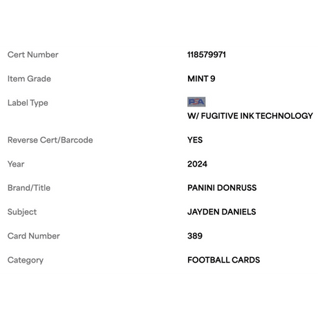 Jayden Daniels PSA 9 2024 Panini Donruss Rated Rookie Card #389