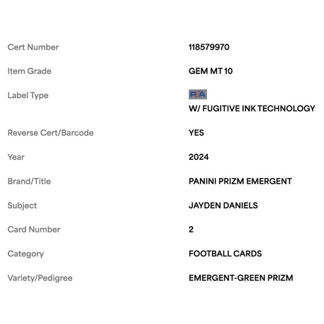 Jayden Daniels PSA 10 2024 Panini Prizm Emergent Green Prizm Rookie RC Card #2