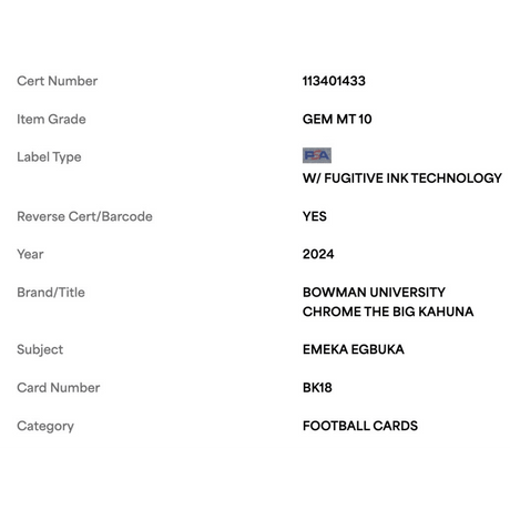 Emeka Egbuka PSA 10 2024 Bowman University Chrome The Big Kahuna Card #BK18