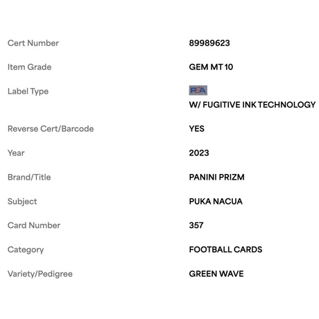 Puka Nacua PSA 10 2023 Panini Prizm Green Wave Rookie RC Card #357