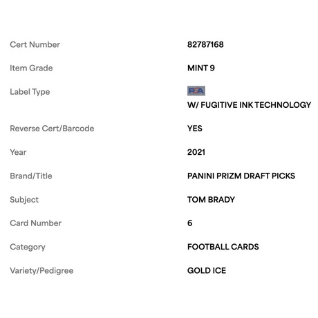 Tom Brady PSA 9 2021 Panini Prizm Draft Picks Gold Ice Card #6