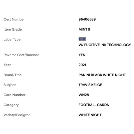 Travis Kelce PSA 9 2021 Panini Black White Night Case Hit Card #WN28
