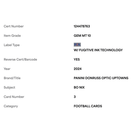 Bo Nix PSA 10 2024 Panini Donruss Optic Uptowns Rookie RC Card #3