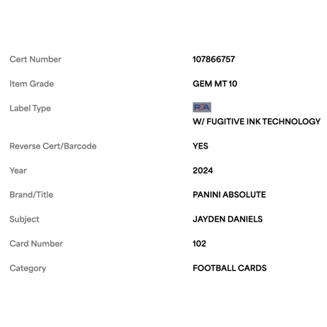 Jayden Daniels PSA 10 2024 Panini Absolute Rookie Card #102