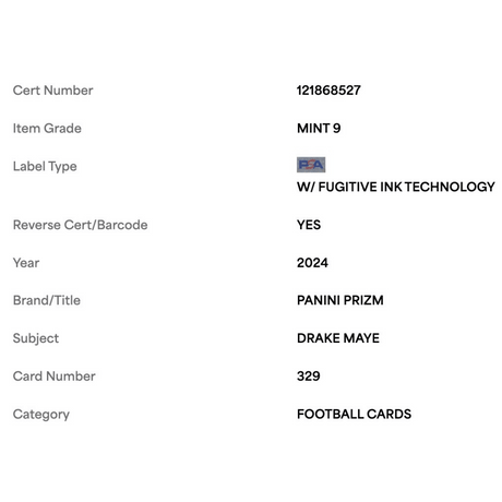Drake Maye PSA 9 2024 Panini Prizm Rookie RC Card #329